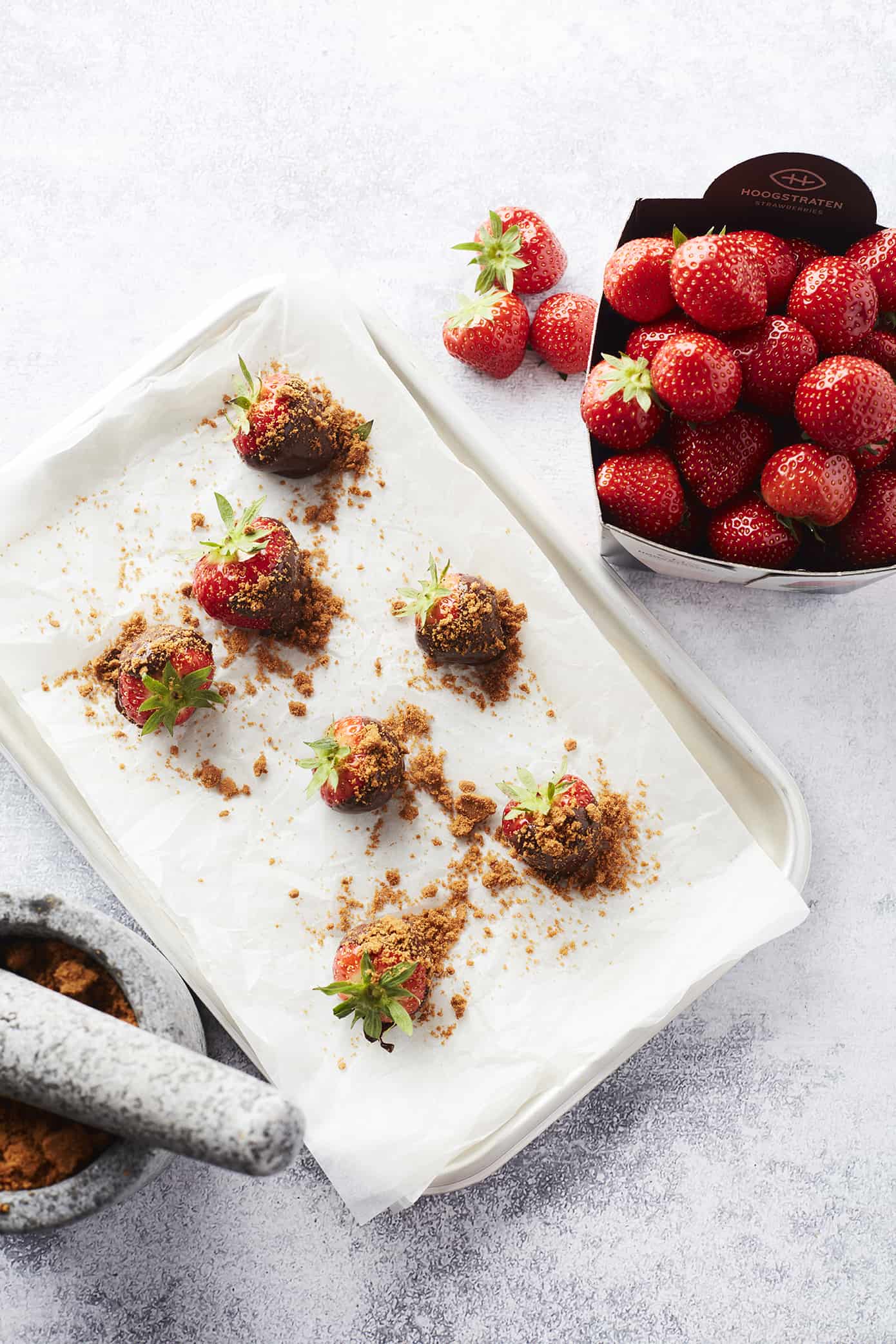 Hallo ik ben Kris Lambrechts, geboren in 1974 en aardbeiteler voor Coöperatie Hoogstraten sinds 1998. Mijn ouders hadden ook al aardbeien, het leven tussen de aardbeien is me dus met de paplepel ingegoten. In 1998 heb ik samen met mijn vrouw Tinne het bedrijf van mijn ouders overgenomen. Onze dag begint 's morgensvroeg, dan doen we voorbereidend werk zodat het personeel kan starten. Daarna regel en controleer ik alles in verband met de teelt van de aardbeien en de planten. Mijn vrouw werkt samen met het personeel in de serre en zorgt ervoor dat iedereen vlot kan werken. Op deze manier proberen we op elk moment aardbeien van hoge kwaliteit te leveren aan u. Geniet ervan!